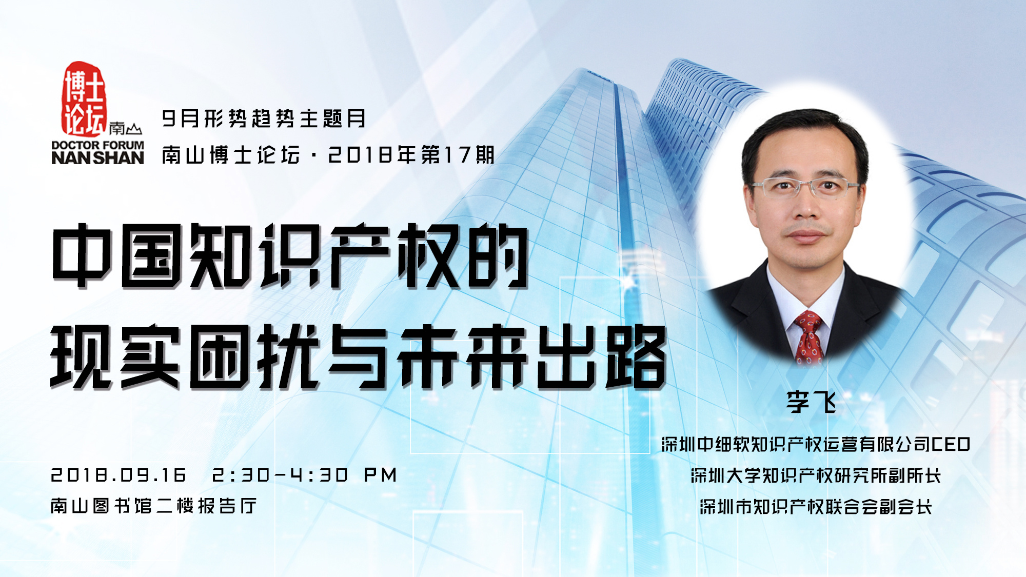 9月形势趋势主题月第4期丨2018年南山博士论坛第17期:中国知识产权的现实困扰与未来出路