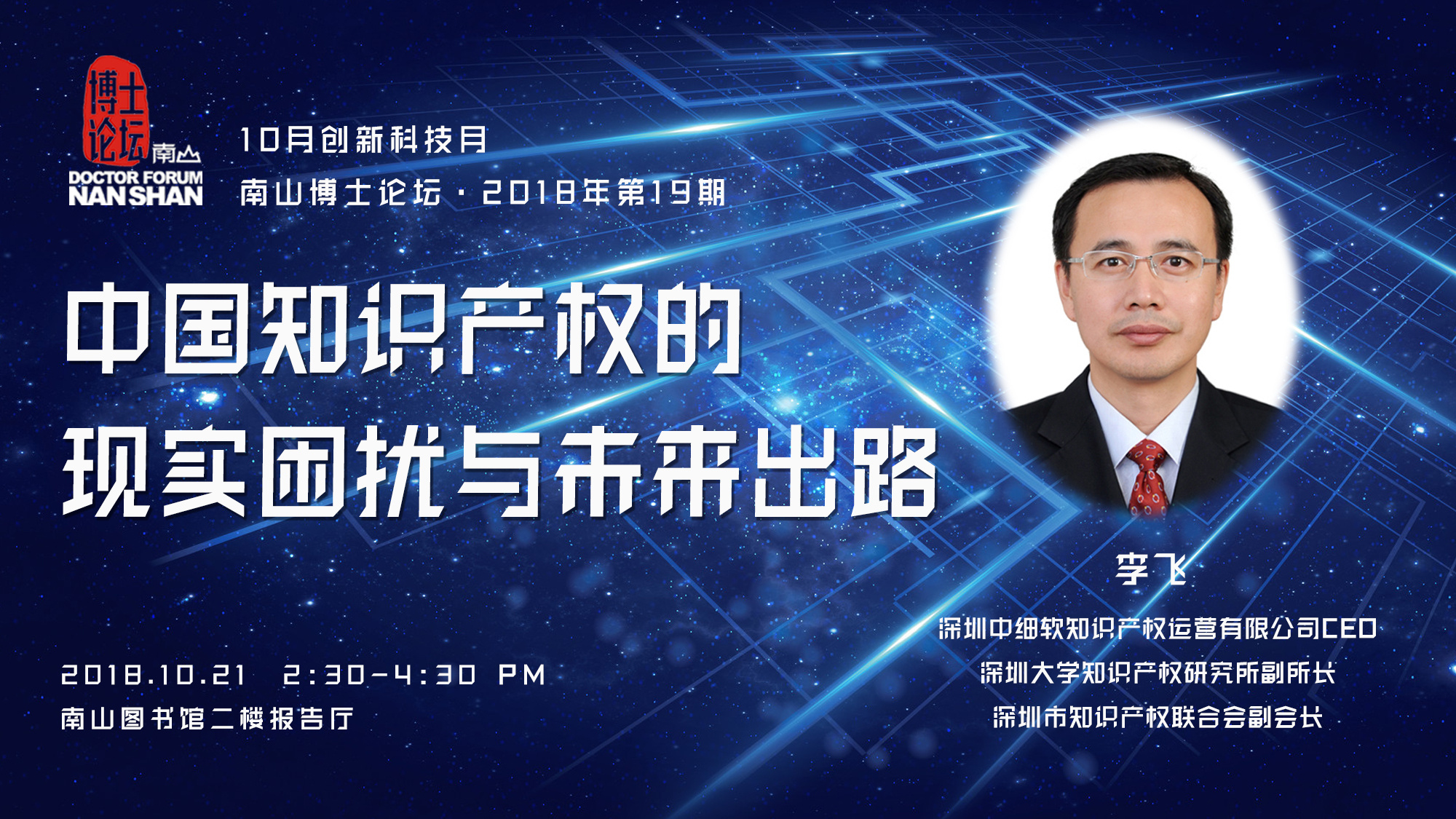 10月创新科技主题月第2期丨2018年南山博士论坛第19期:中国知识产权的现实困扰与未来出路