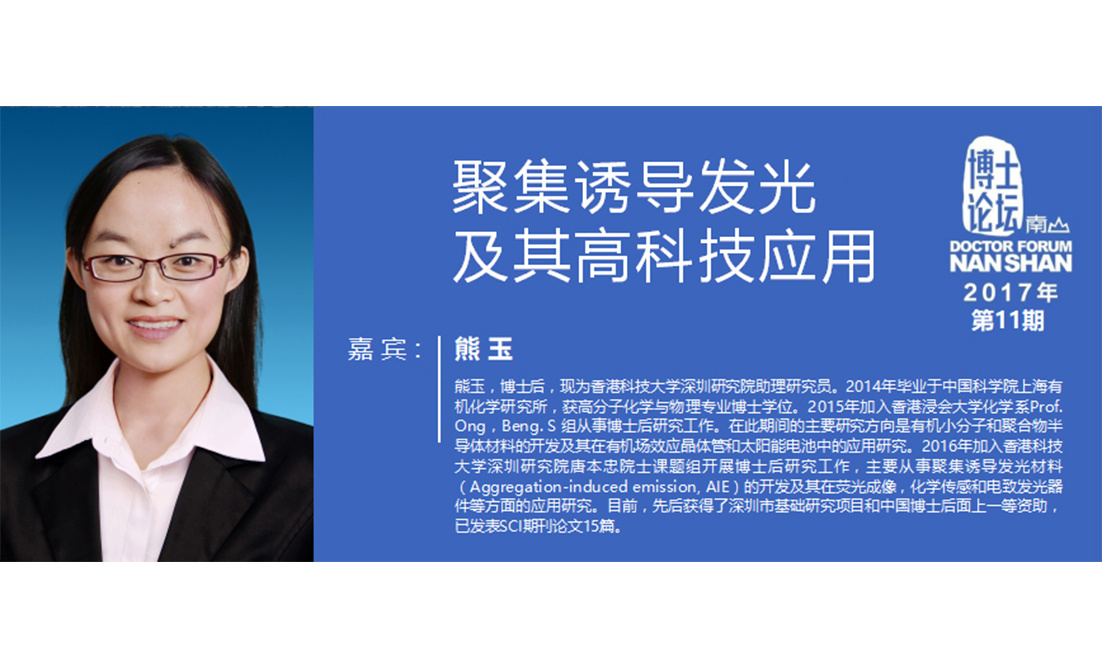 论坛预告丨2017年第11期南山博士论坛:熊玉《聚集诱导发光及其高科技应用》