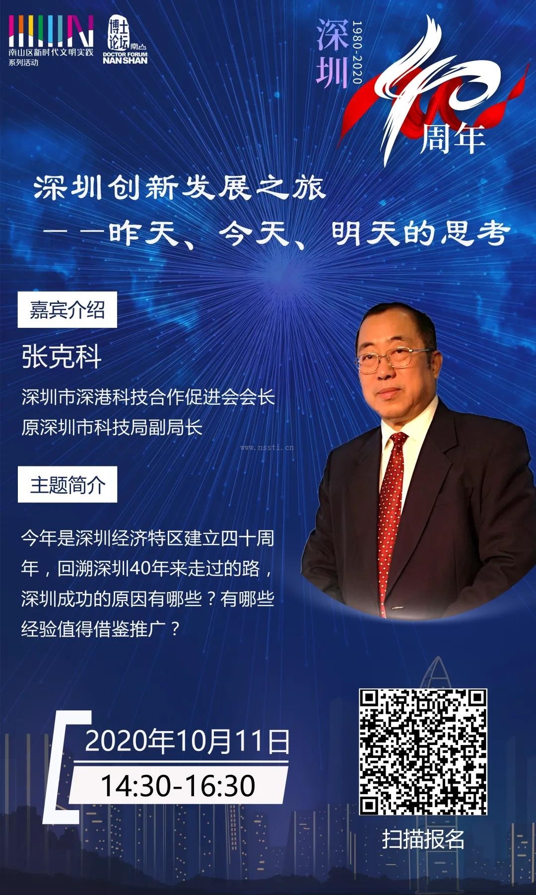 本期南山博士论坛将邀请深圳市深港科技合作促进会会长、原深圳市科技局副局长张克科,介绍深圳坚持创新驱动、推进区域协调发展的成功经验,从不同视角深入解读深圳、香港等城市地区产业演进案例,深刻剖析“深圳创新发展之旅”。
