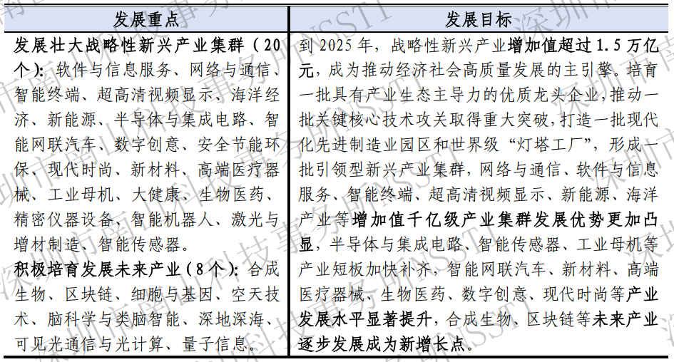 表1 深圳市产业体系和发展目标的顶层设计